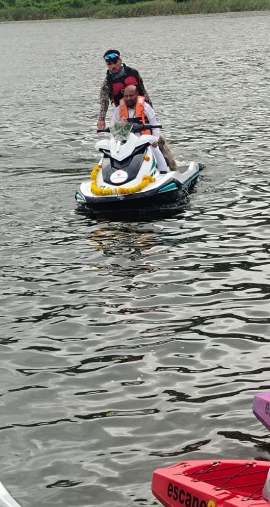 ರಾಮನಗರ, 27/09/2025: ಇಲ್ಲಿನ ರಂಗರಾಯರ ದೊಡ್ಡಿ ಕೆರೆಯಲ್ಲಿ ದೋಣಿ ವಿಹಾರಕ್ಕೆ ಶಾಸಕ ಎಚ್.ಎ. ಇಕ್ಬಾಲ್ ಹುಸೇನ್ ಅವರು ಶನಿವಾರ ಚಾಲನೆ ನೀಡಿದರು. ವಾಟರ್ ಸ್ಕೂಟರ್ ಚಾಲನೆ ಮಾಡುವ ಮೂಲಕ ದೋಣಿ ವಿಹಾರವನ್ನು ಉದ್ಘಾಟಿಸಿದರು.